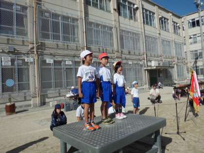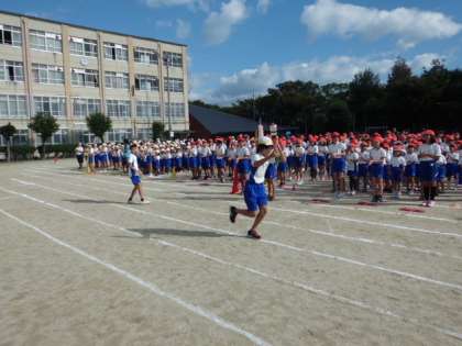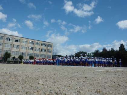 さわやかな秋空の下で,最終の運動会全校練習をしました。とてもすばらしい態度でしたが,行進の点数は98点ということでした。後2点はどうしたらいいのか・・・先生からしっかりポイントを教えてもらったので当日は100点満点をめざしましょう。