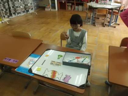 自分のめあてをもって,算数の学習をしています。プリントが全部できたり,めあてを達成したりすると,すごく満足そうな笑顔を見せてくれます