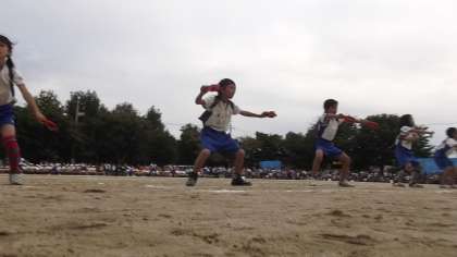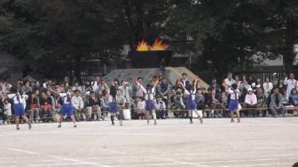 4年生は,区民運動会に続いての発表です。完成度はかなり高めです。聖火台の炎のように燃えるような演技です。