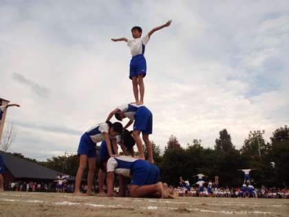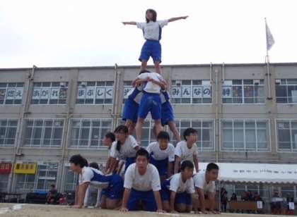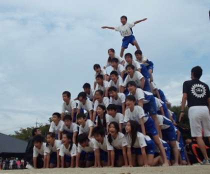 仲間を信じてがんばった組体操・・・6年生73名が心を一つにして,最高の演技をしました。