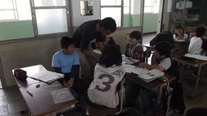 5分の4平方mのかべを3dLのペンキでぬりました。1dLのペンキでは何平方mぬれるでしょうか・・・という問題です。立式の後,どのように考えて計算するのか小グループや全体で議論していました。分数のわり算は考え方が難しいですね。みんな粘り強くがんばってください