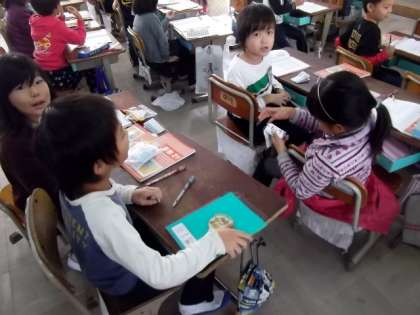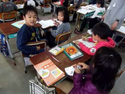 かけざんの6の段を学習していました。初めて学習する2年生にとっては,6・7・8の段あたりは,かなり難しいところです。友だちどうしで聞き合って,みんなとてもがんばっていました。