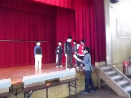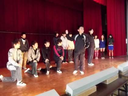 先生から演技指導を受けて,がんばって練習していました。声も大きくなり,身ぶり手ぶりもつけていい演技になってきました。