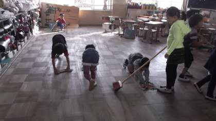 1年生は6年生にそうじの仕方を教えてもらい,上手に自分たちでそうじできるようになってきました。