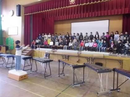 今日の体育館練習では,6年音楽専科の谷口先生に見てもらいアドバイスをもらいました。本番までもう少しです。さらに上手になるようにがんばります。