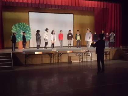 学芸会まであと少し・・・練習もかなり大詰めです。細かな演技指導も先生から入り,さらに上の段階の演技をめざしています。裏方の仕事もしっかりとがんばっていました。