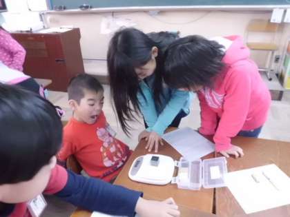 ものの形や大きさが同じなら,重さも同じかどうかを予想し調べました。これまでの生活経験からしっかり予想し,電子ばかりを使って検証していました。