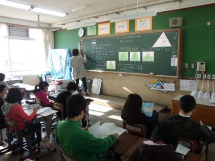 三角形の求積の結果から,どのように求めているのかを考えて,説明していました。同じ三角形の面積を求めるのにもいろいろな考え方があるのですね。
