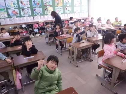 はしの正しいもち方について学習しました。まだまだはしがうまく使えずに上手に食べることができないこともあります。はしの達人になって,何でも上手に・おいしく食べられるようになるといいですね。