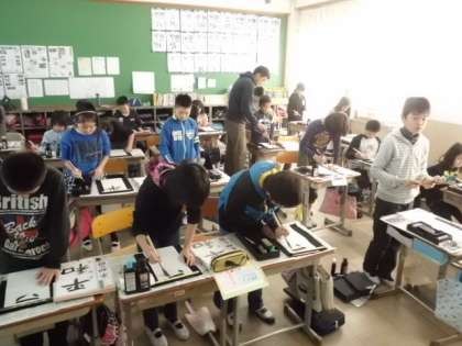 書初めをしました。画仙紙に書くので,いつもと違って難しかったですが,しっかり気持ちを込めて書いていました。字のごとく,日本がいつまでも「平和な国」であるように願いを込めて・・・!