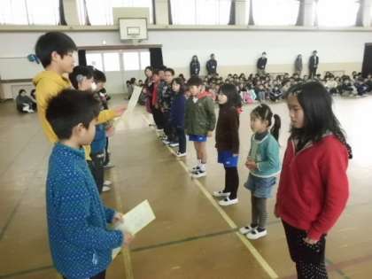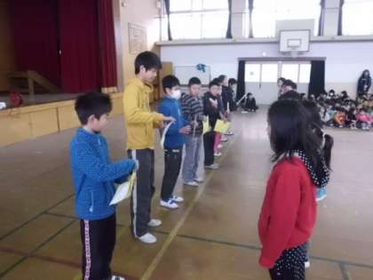 給食週間の時に1週間残菜がなかったクラスに,給食委員会より『ペロリ賞』表彰がありました。これからもしっかり食べて丈夫な体を作りましょうね。