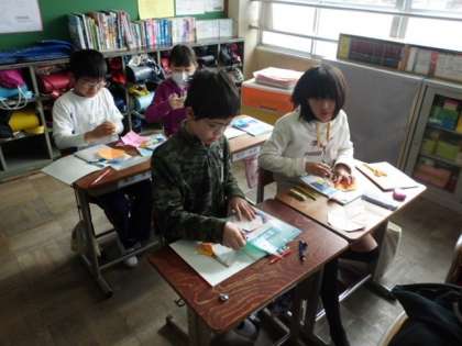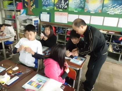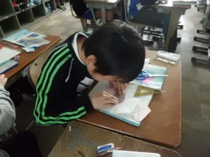 色紙で正六角形を作り,その中にできる三角形の性質などをいろいろ調べました。大発見がたくさんありました。