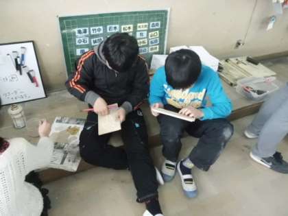 オルゴールの完成が近づいてきました。彫り上がった子たちは着色をしています。とてもいい感じになってきています。みんな思いを込めて丁寧に作業を進めています。