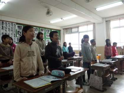 6年生を送る会で歌う『はじめの一歩』の副次的旋律を練習していました。みんな音程をしっかりとってきれいな歌声で歌っていました。6年生に心を込めてしっかり歌いましようね。