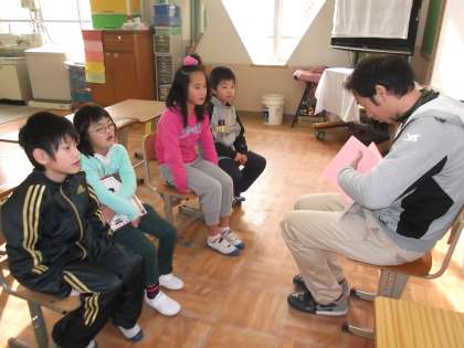 今日の『さわやかモーニング』は,6年2組の白崎先生がなかよし学級にきてくれました。白崎先生が『チョコだるま』という絵本を読んでくださいました.子どもたちは,白崎先生と楽しい絵本の世界に浸っていました。