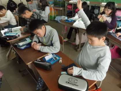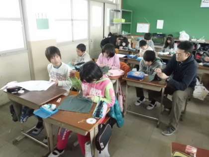 5年生から始まった家庭科の学習・・・さいほうの腕前もかなり上達してきました。針さばきもサマになっていますね。