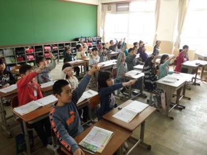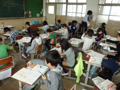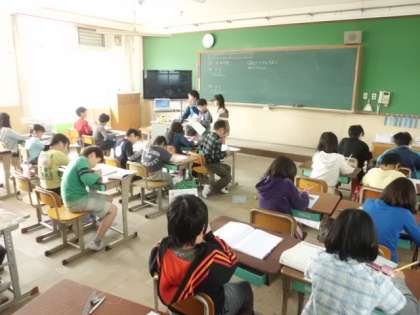 新出漢字の学習では,みんなで書き順をしっかり確認していました。