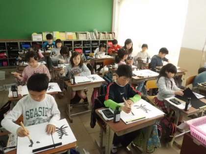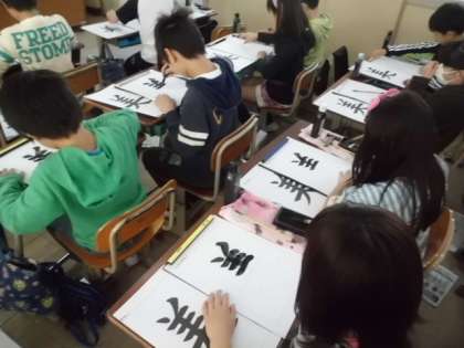 4年生になって初めての習字です。美しい姿勢と美しい心で『美』を書きました。