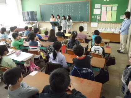 金子みすずさんの詩「わたしと小鳥とすずと」の詩をグループで読み込み,グループで考えた読み方を交流しました。役割読みするところ,みんなで読むところなど詩に込められた思いを表現するためにがんばっていました。