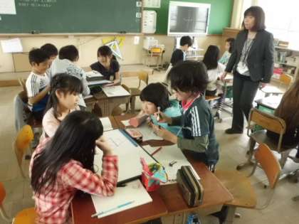 正三角形がいくつあるかを見つける学習です。まずは個人で考えました。そして次にグループで・・・みんなで考えると自分では見つけられなかった正三角形がどんどん見えてきました。頭を柔軟にしていろいろな見方をすることが大切ですね。
