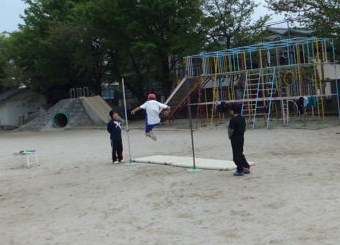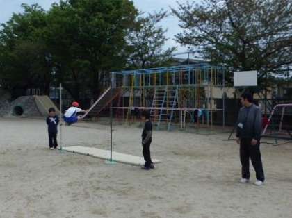 みんなリズムよく助走し,ふみ切りに神経を集中させて跳んでいました。まだ,バーを気にして思い切ってジャンプできないところもありますが,練習を重ねて記録を伸ばして下さいね。