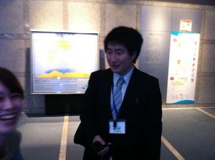 水族館内を見学し,珍しい魚をたくさん見学していたその時・・・何と珍しい事に一昨年まで川岡東小学校に勤務されていた高田先生と奇跡の再開!イルカショーに負けないくらいの大歓声が!?