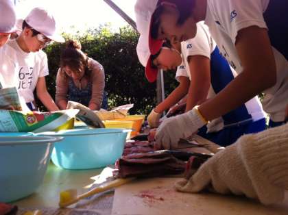 みんな真剣そのもの,包丁さばきもなかなかの腕前です。