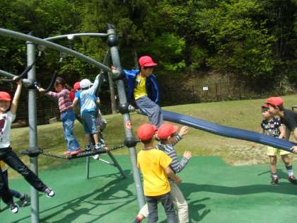 普段では遊べない遊具に子どもたちのアドレナリンは最高潮に達しました。「遊んでいいよ」と言うと,「待ってました」とばかりに遊具に向かって走っていきました。