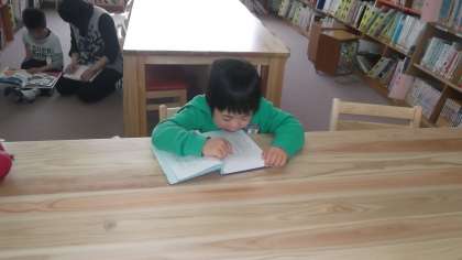 図書室にいきました。子どもたちは,それぞれに好きな本を借りて自分で読んだり,先生に読んでもらったりして,静かにゆったりした絵本の世界を楽しみました。