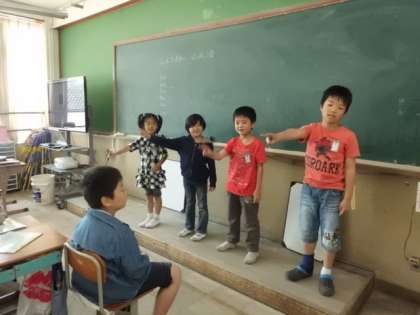 みんなが大好きな「ジェットコースター」の歌に合わせて,グループで振り付けを考えて発表していました。少しはずかしそうにしながらも,ジェットコースターの楽しさやスピード感が出るように考えてできていました。歌とおどり・・・心がウキウキしますね。