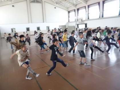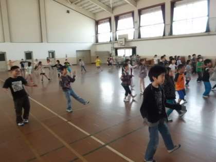今日は体育館でキャンプファイヤーの練習をしていました。今も昔もキャンプファイヤーと言えば『マイムマイム』の踊りなくしては語れません。4年生はステップからかけ声まで指導を受け,完璧にマスターしていました。のりのり過ぎて,火に飛び込んでしまわないように注意して下さいね。