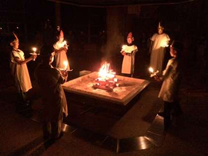 でも,浦山から火の神が火の子をつれて降臨され、キャンプファイヤーのための火を点火して下さいました。