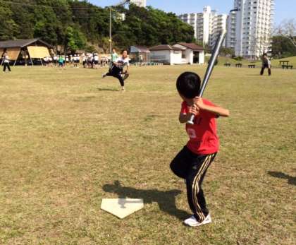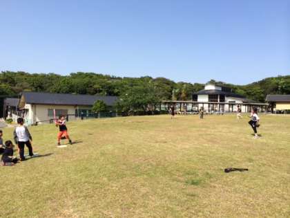 芝生広場では、野球・サッカーで熱い戦いが繰り広げられています。