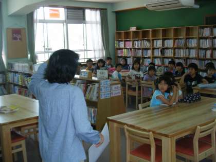 本日5校時に,図書館教育支援員の小畠先生に図書館オリエンテーションをしていただきました。