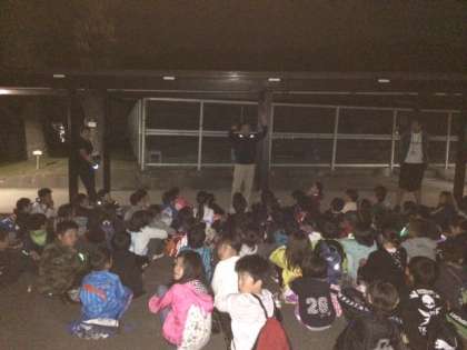 歓喜のゴールの後は、校長先生から月の満ち欠けと潮の干満の関係についてお話をしてもらいました。