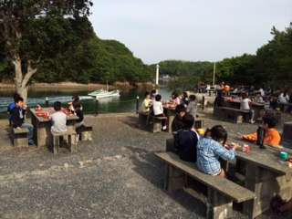 あさひをあびて、往来する漁船に手を振りながら、おいしくいただきました。