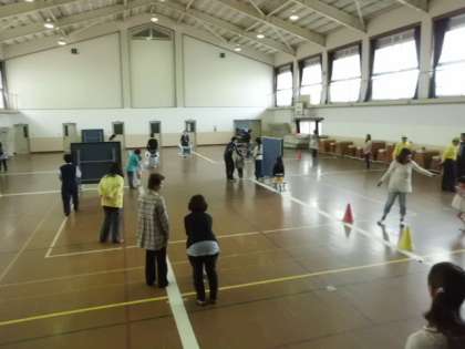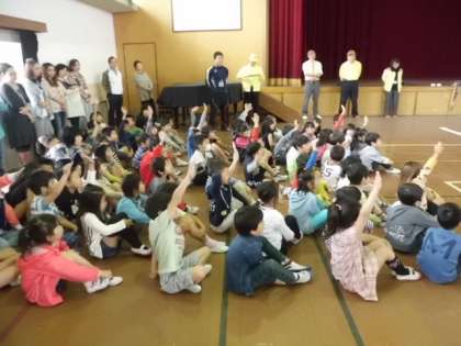 本日2校時に,西京警察署・川岡東交通推進会・川岡東小学校PTAの皆様にお世話いただき,交通安全教室を実施しました。道路を歩くときに注意すべき点をはじめに教えてもらい,体育館内を町の様子に見立てて歩く練習をしました。みんな教えてもらった通りにできていました。今日学んだことを忘れずに,これからも交通安全に気をつけて過ごしていきましょうね。