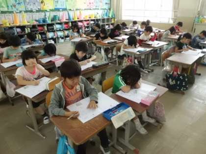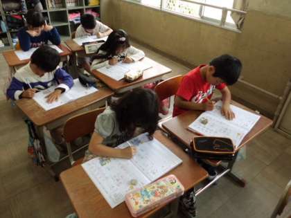新出漢字で「細」と「体」を学習していました。書き順をまちがえないように,一画一画とてもていねいに書いていました。静かに集中し,鉛筆の「コツコツ・・・」という音だけが静かな教室にひびいていました。