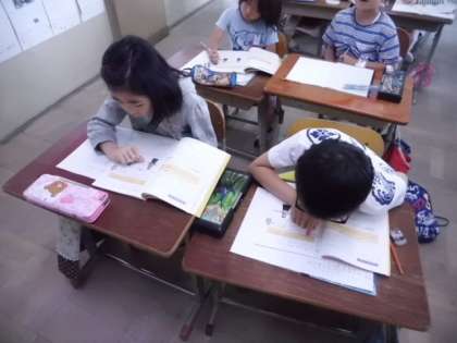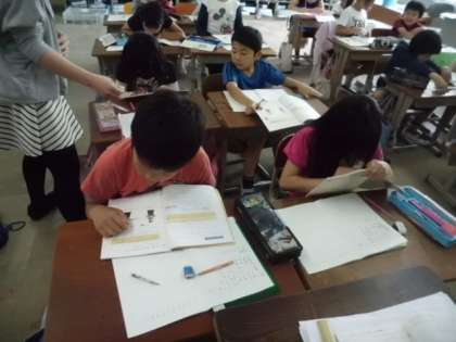 ものさしで長さの読み書き方,書き方を学習していました。
