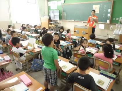 1年の国語教材における不朽の名作『はなのみち』です。先生に読んでもらったとたんに子どもたちはこのお話が気に入ったようですね。とてもユーモアあふれるお話です。お家でも音読を聞いてあげて下さいね。