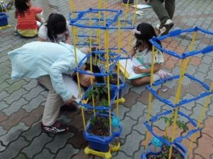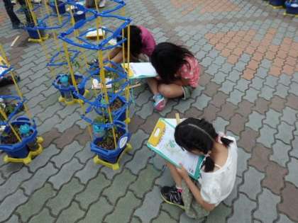 一人一人が育てているミニトマトを観察していました。ものさしをもってきて高さをはかり,「うわ〜,30cmや〜」ととてもうれしそうでした。算数で学習している事が生活科でも生かされているようです。まだ実はできていませんが,これから夏に向けて成長がとても楽しみですね。