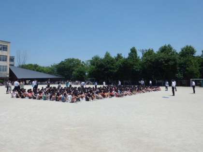 4校時には大規模災害を想定しての避難訓練を行いました。すみやかに運動場に避難し,保護者お迎えのもと,下校することができました。