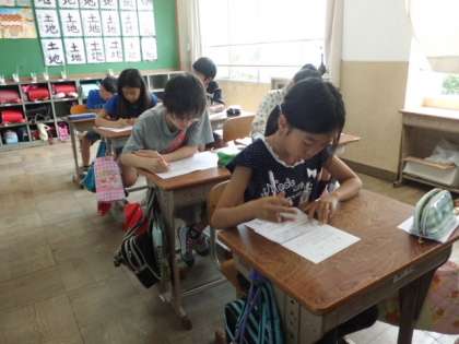お手本をしっかり見ながら一字一字とてもていねいに書いていました。この集中力・・・写真からみなさんに伝わっているでしょうか!
