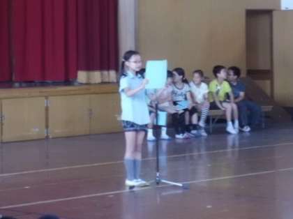 今日は4年生4人の代表児童が「みさきの家」の思い出を発表しました。キャンプファイヤーやナイトハイクなどみんなで協力したり,楽しく盛り上がって友情を深めたりしたことを発表しました。