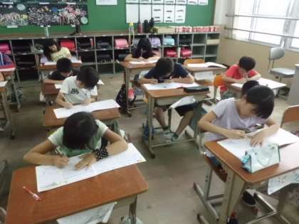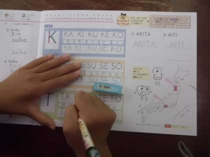 ローマ字の学習をしています。五十音を全てローマ字で書けるようになって,いろいろな表記もローマ字でできるようになるまでがんばります。
