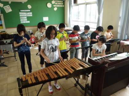 名曲『マルセリーノの歌』をグループ合奏しています。発表会をしましたが,どのグループの練習の成果をしっかり発揮していました。グループによって使う楽器も少し違うので,それぞれちがいのあるいい感じの演奏をしていました。