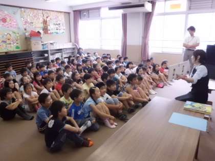 読書週間の取組として今日は1・2・3年・なかよし学級に読み語りをしていただきました。何冊かの本を読んでいただきどの学年も,すごく楽しい時間を過ごしました。