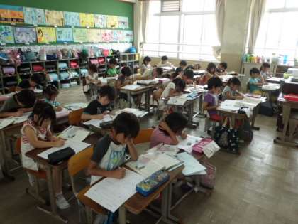 スイミーが仲間と協力して,「海でいちばん大きな魚のふりをして」およぐようすについて読み取りをしました。