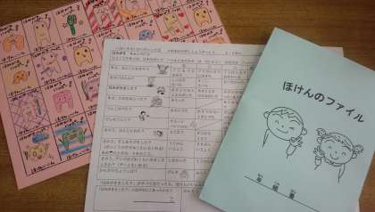はみがきの欄がすべて◎だったら,保健委員が作った歯みがきハッピーカードがもらえます。年4回の生活チェックでカードを集め,ファイルに集めることで習慣を実感して励みにしてほしいと思っています。
