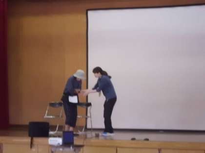 本日,桂川園の方々に認知症の方とどのように接し,サポートできるかを学びました。まずは,認知症がどのようなものかをスライドや寸劇を見て学びました。